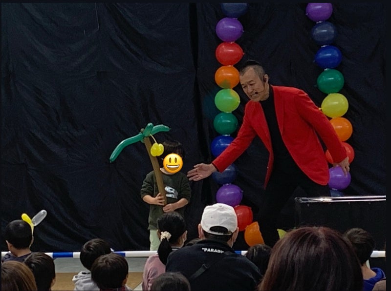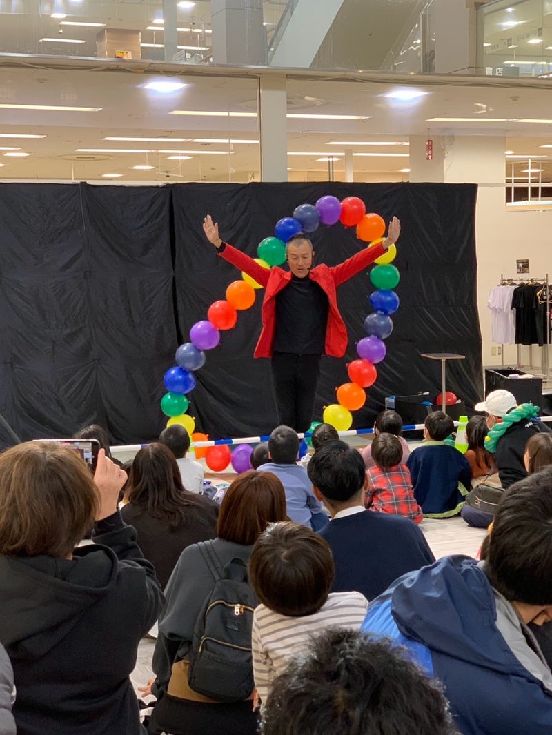 イオンもりの里店でのバルーンショーが無事終わりました。前半は、バルーンアートを作って子どもたちにプレゼント🎁。 そして、バルーンつながりということで、風船を使ったサイエンスをちょっと取り入れて ラストは、このところずっと練習していたジャイアント・バルーン。 なんと、直径2メートル近い、超巨大風船を膨らませ、その中に入ってしまうという荒技(笑)