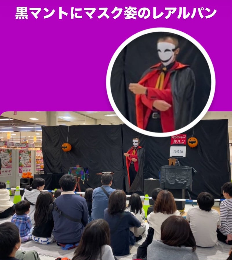 昨日はイオンもりの里店で、マジシャンルパンのハロウィンマジックショーでした。